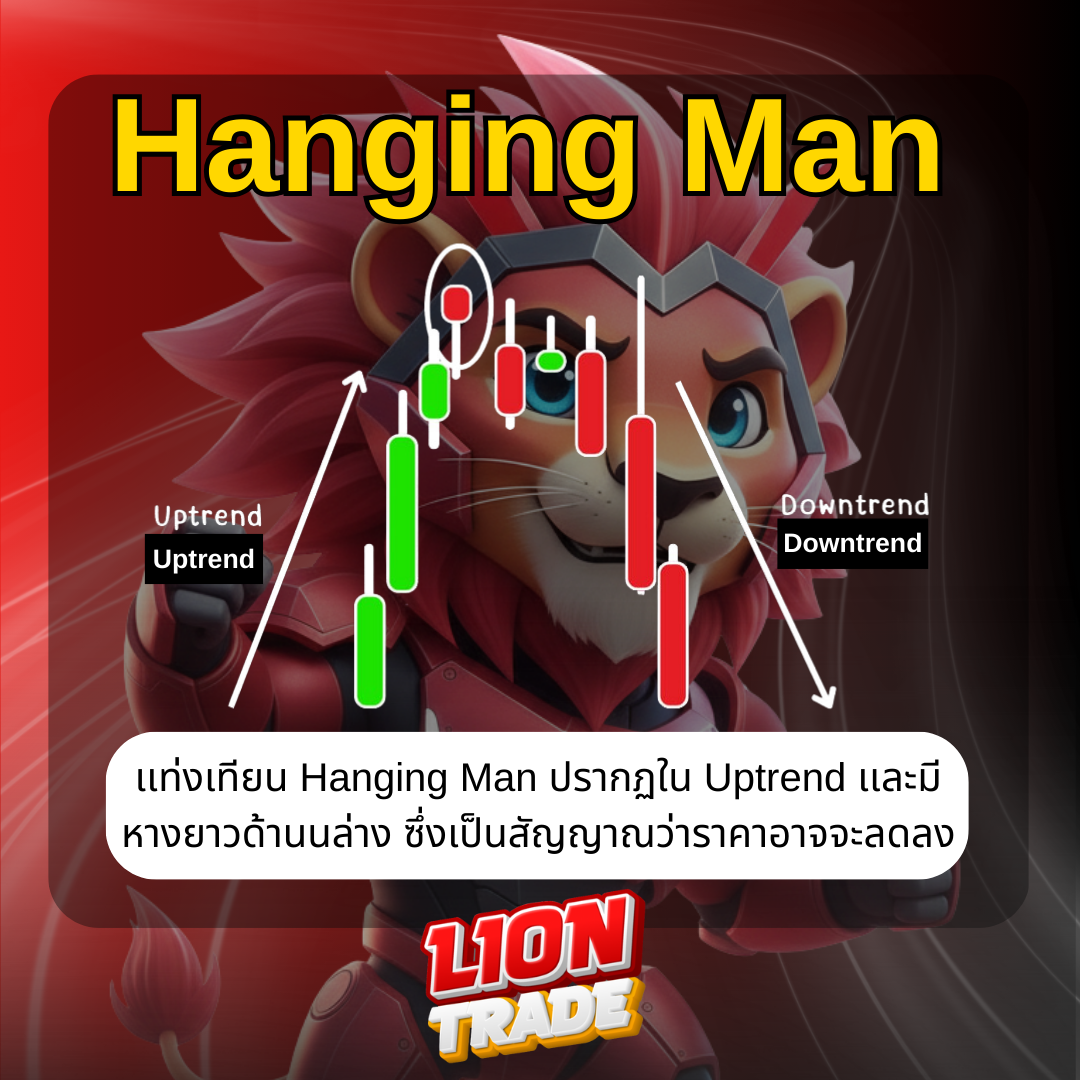 - Hanging Man: รูปร่างเหมือน Hammer (เกิดในขาขึ้น)