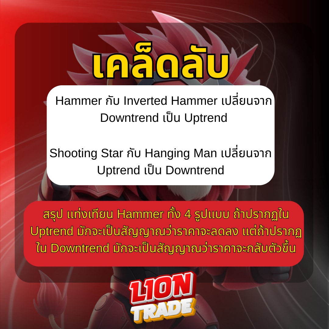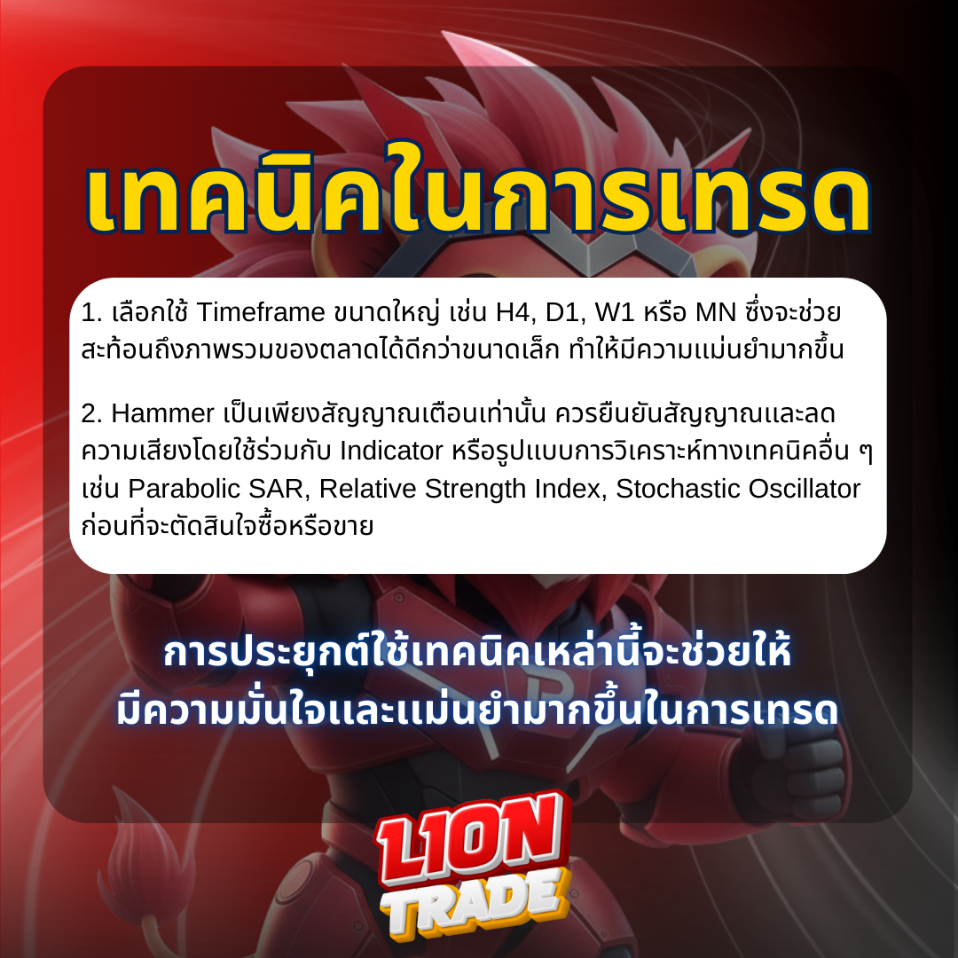 หวังว่าบทความนี้จะช่วยปูพื้นฐานเรื่องแท่งเทียน Hammer ให้เพื่อนๆ เข้าใจและนำไปปรับใช้กับแผนการเทรดของตัวเองได้นะครับ ขอให้พอร์ตฟ้า กำไรพุ่งกันทุกคนครับ! (จากไลออน สอนเทรด Lion Trader) 🦁🚀